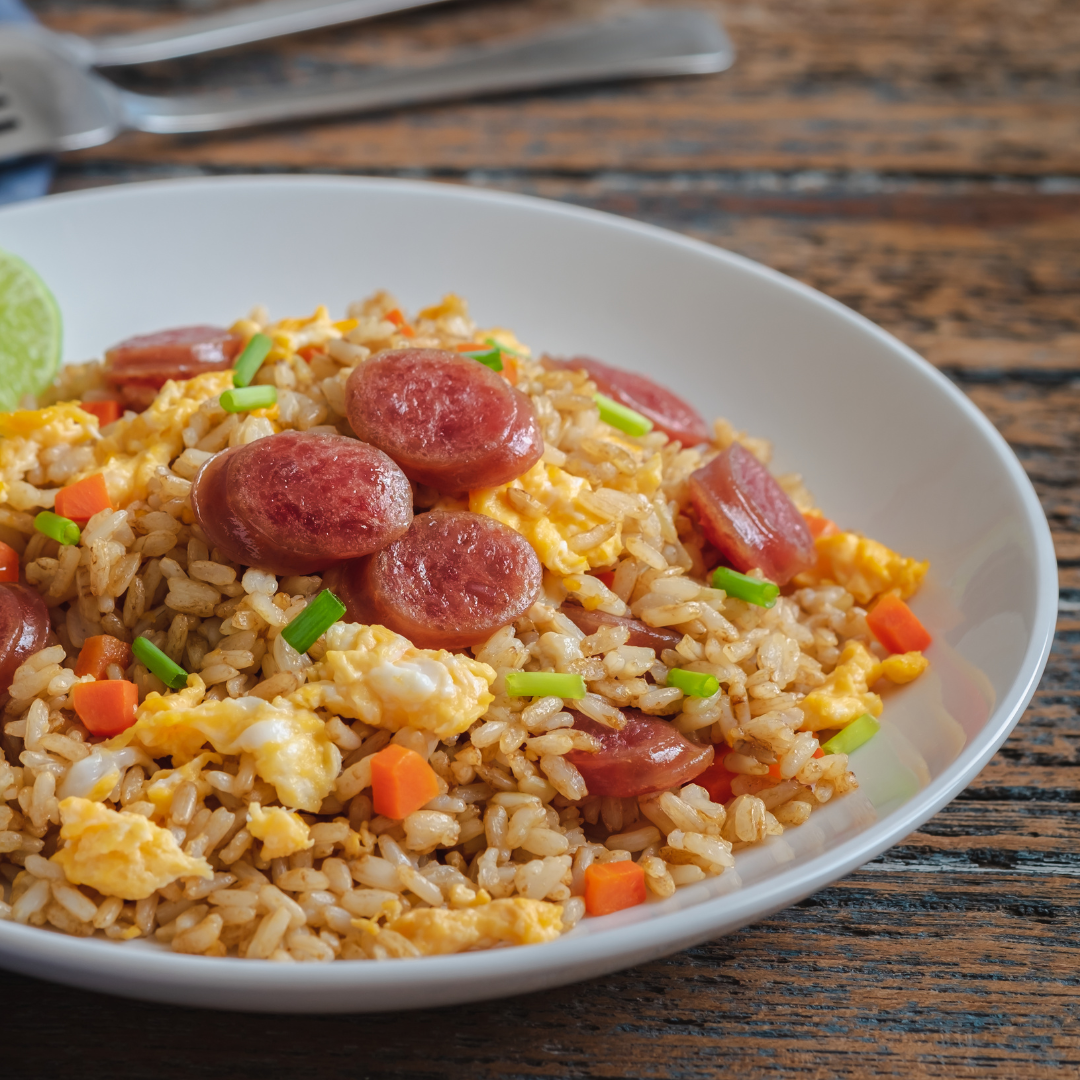 香喷喷的米饭搭配中式香肠和香菇一起蒸。